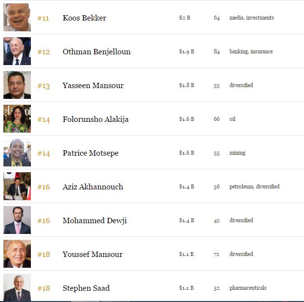 We have purposely excluded dispersed family fortunes such as the Chandaria family of Kenya and the Madhvanis of Uganda, because the wealth is believed to be held by dozens of family members. We do include wealth belonging to a member’s immediate relatives if the wealth can be traced to one living individual; in that case, you’ll see “& family” on our list as an indication.