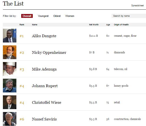 According to Forbes' newest report of the richest African billionaires in 2017, two Nigerians have lost their status while three others made it to the list.