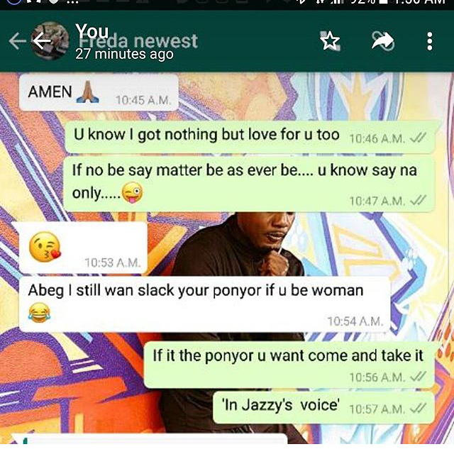 I the chat, Freda had responded to AY's request, asking him to come and get "it", as she was willing to let him have a piece of her.