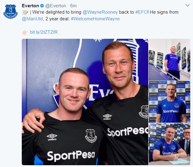 Former Manchester United striker Wayne Rooney has joined Everton over the weekend on a free transfer. The announcement was made on Everton's Twitter handle with photos.